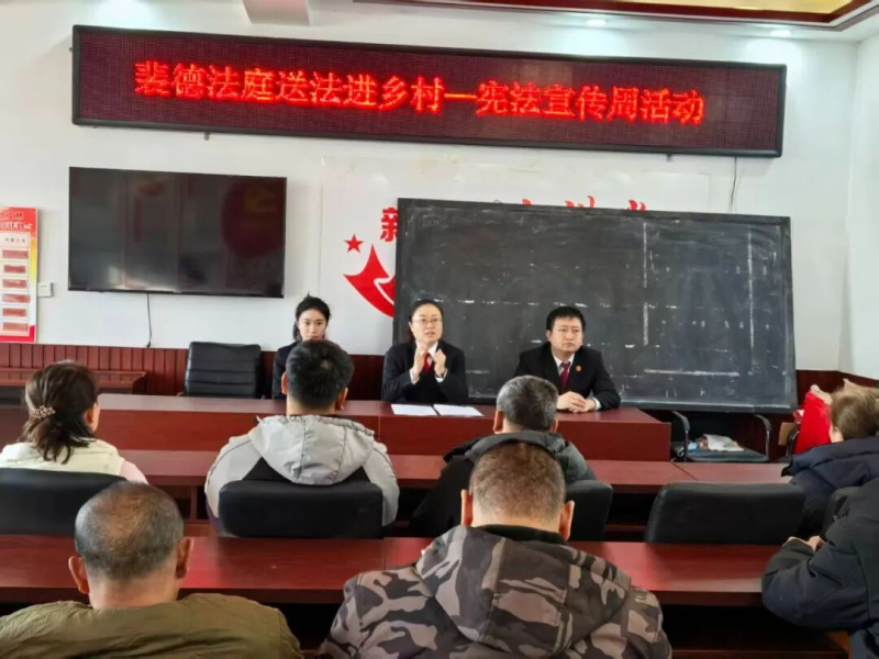 在裴德村的村委会活动室里,伴随着马法官生动形象的案例讲解,气氛越来越热络。宣传进入互动环节,村民老张咨询继子女赡养问题;几位妇女围着咨询婚姻家庭权益,我就以“孝道+法理”双重视角耐心引导解答,用“夫妻共同权利义务”等小案例拆解法律要点释法明理。书记员们记录着老乡们的问题,“孙子能不能继承爷爷的宅基地?”“买到假种子了怎么办?”“邻居对着我家大门安装监控合理吗?”一个个疑问在法官的耐心引导下得到了解答,赢得了乡亲们的理解和称赞。